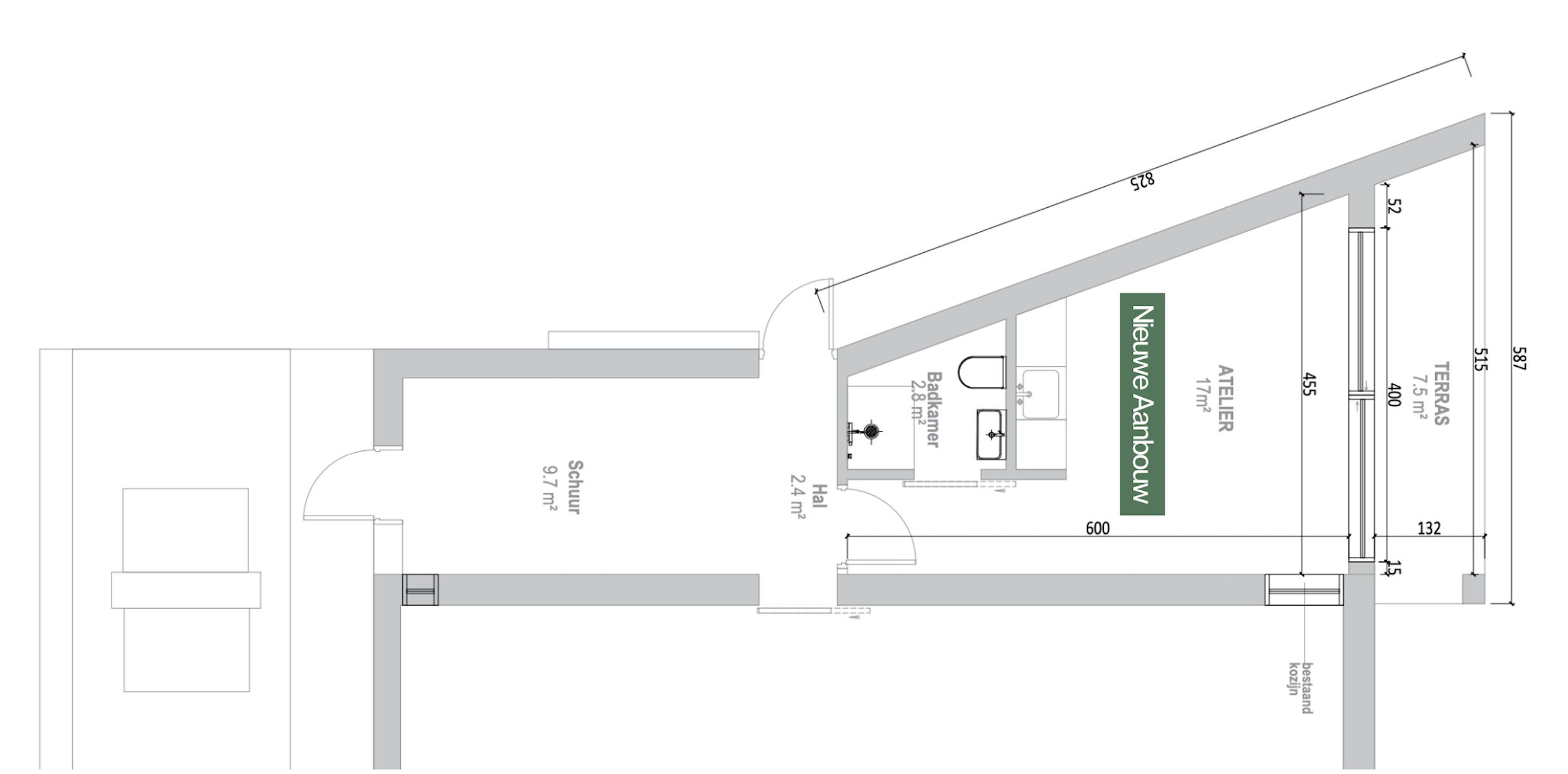 Voor dit project is gekozen voor een heipalenfundering op basis van zorgvuldig bodemonderzoek. Hierdoor is de aanbouw volledig losgekoppeld van de ondergrond en bestand tegen natuurlijke invloeden.